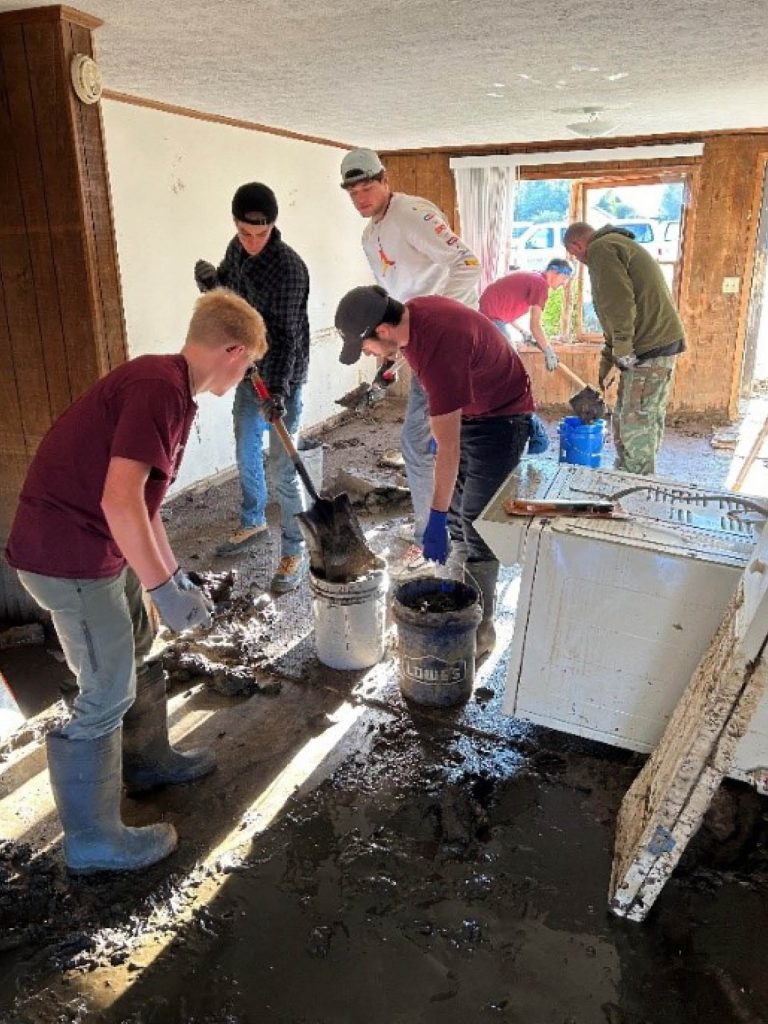 Last fall, a group from Bethel gave up their fall break (Oct. 9-13) to serve on a disaster relief trip to East Tennessee, in an area devastated by Hurricane Helene. With an overflowing trailer of supplies donated by St. Mark Missionary Church, the team of six (five students and Missionary-in-Residence Jeremy Tice) set off from campus at 3 p.m. and arrived in Tennessee at 3 a.m.