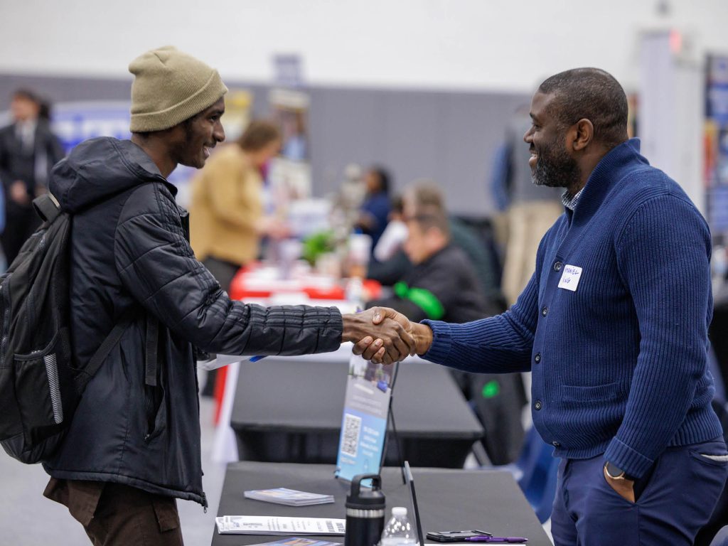 Bethel University hosted a career and internship fair on Thurs., Feb. 6, 2025, in the Goodman Gymnasium on Bethel’s campus. Representatives from more than 40 employers in a variety of industries – including Patrick Industries, Lake City Bank, WFRN, The Mishawaka Police Department, Oaklawn and nine local school districts, among many others – were on hand to talk about available jobs and internships. The event was free, and students had the opportunity to get a professional headshot.