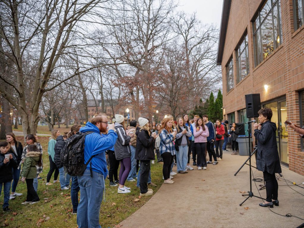 On Nov. 25, 2024, President Bellefeuille hosted the 4th annual Lighting of the Pilot Lights around the ponds. Students, faculty and staff enjoyed carols, cookies, lights and Christmas cheer.