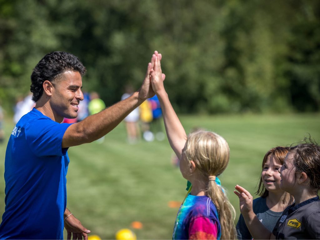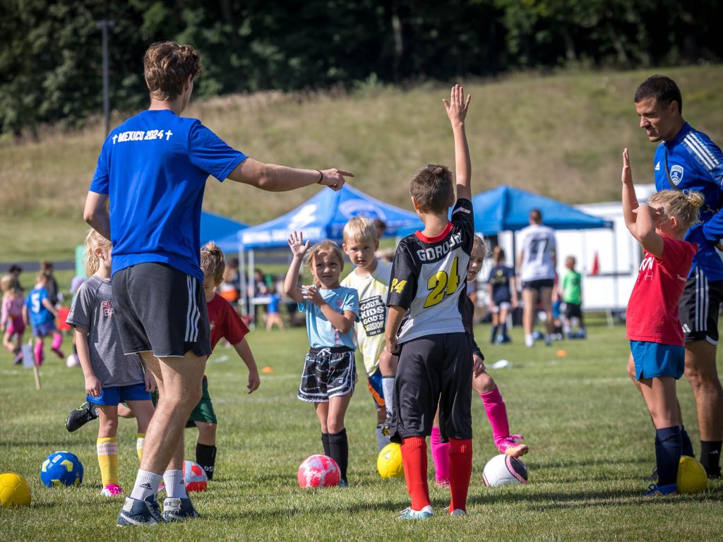 The evening before the Summit Soccer clinic, the Bethel Men’s Soccer team had just returned from a mission trip in Mexico, where they served at an orphanage and did outreach clinics, yet they brought a magnetic energy and drew kids in on their level.
