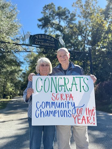 Dick ’74 and Carol Patterson ‘68 were honored with the Community Champions Award from the South Carolina Recreation and Parks Association for their work on the Vereen Memorial Historical Gardens Committee. Known for their unwavering dedication and spirit, the Pattersons have volunteered at the gardens for more than a decade. Often arriving before sunrise, they lead trail maintenance, share the park’s rich history with visitors, mentor new volunteers and so much more.