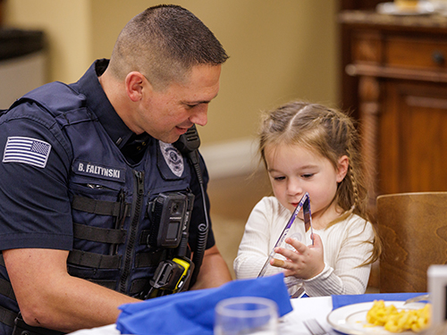 Today, Faltynski serves as a Lieutenant in the Mishawaka Police Department where he runs the Community Relations Unit. He organizes neighborhood watch programs, National Night Out events and countless outreach initiatives that build trust and connection between law enforcement and residents. Because of his work, Faltynski was honored as the 2024 Officer of the Year for the City of Mishawaka and received the Timothy Award for Outstanding Service from Bethel University in 2025. But he is quick to point the glory back to God.
