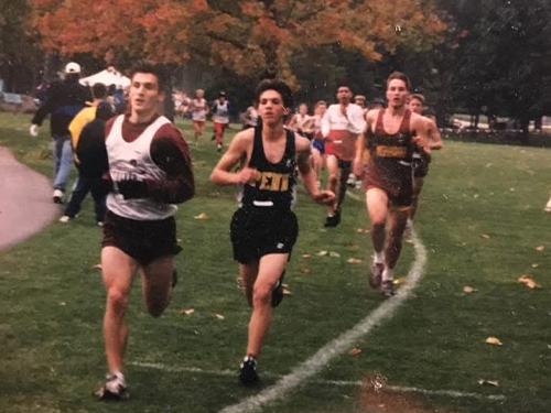 Running with former teammate Peter Ryan in Bethel Cross Country uniforms.